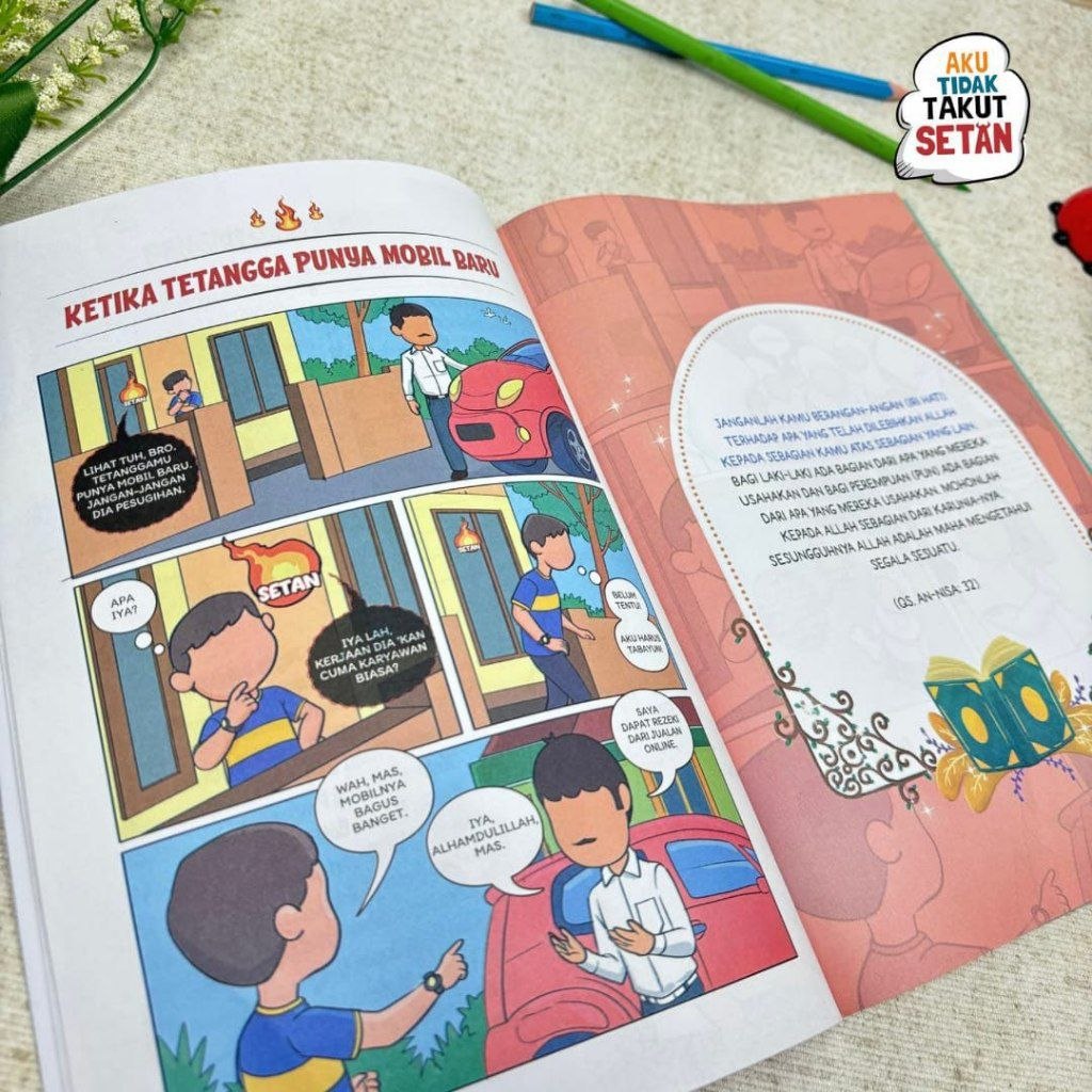 Dengan komik ”Aku Tidak Takut Setan” bantu anak dalam memahami tentang bagaimana tipu daya setan dalam menggoda manusia, sehingga anak dapat menemukan jurus jitu dalam melawannya